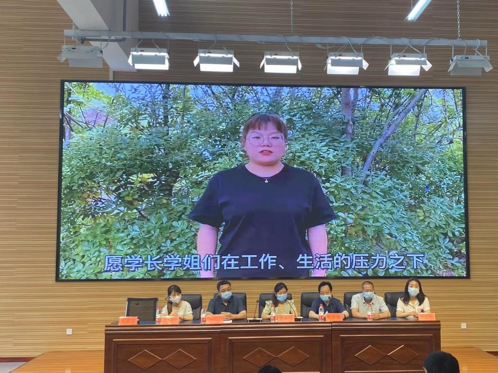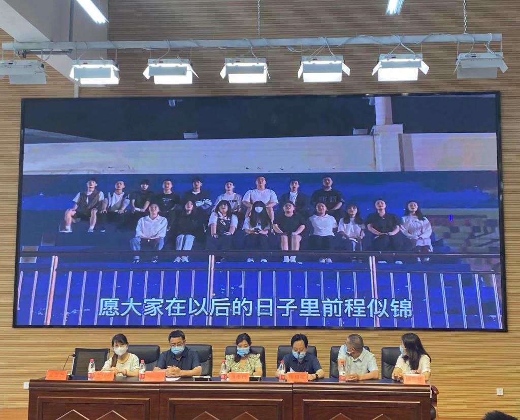 典礼播放2020级同学为2019级毕业生送去的离别寄语。2020级学弟学妹们为曾经手把手帮带他们的毕业生送上了良好的祝愿和依依不舍之情。