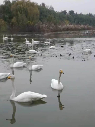 “一场秋雨一场寒,十场秋雨要穿棉”是老人们常说的古话。一场场的秋雨落下,同学们开始穿上棉衣。天鹅湖也等来了每年飞来过冬的天鹅们