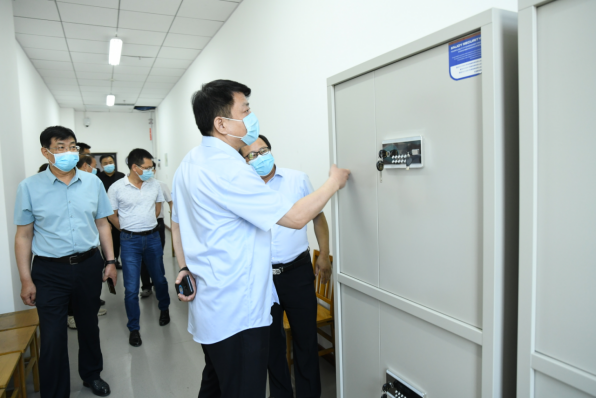 在保密室,杨彤实地查看了保密室的配置情况,要求严格按照国家考试保密规定,高标准、严要求配置保密柜和监控设备,确保考试资料安全保密。