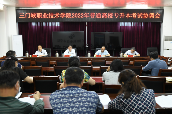 5月27日上午,学院在天鹅湖校区荣誉室召开2022年普通高校专升本考试协调会。党委副书记、院长颉潭成出席会议并讲话。党委委员、副院长黄世谋,党委委员袁文山及教务处、学生处、财务处、总务处、招办、保卫处、纪检监察室、团委、现教中心负责人和公共教学部、建筑工程学院、经济管理学院、汽车学院、师范学院、食品园林学院、信息传媒学院、医护学院、智能制造学院党政负责人参加会议。会议由黄世谋主持。