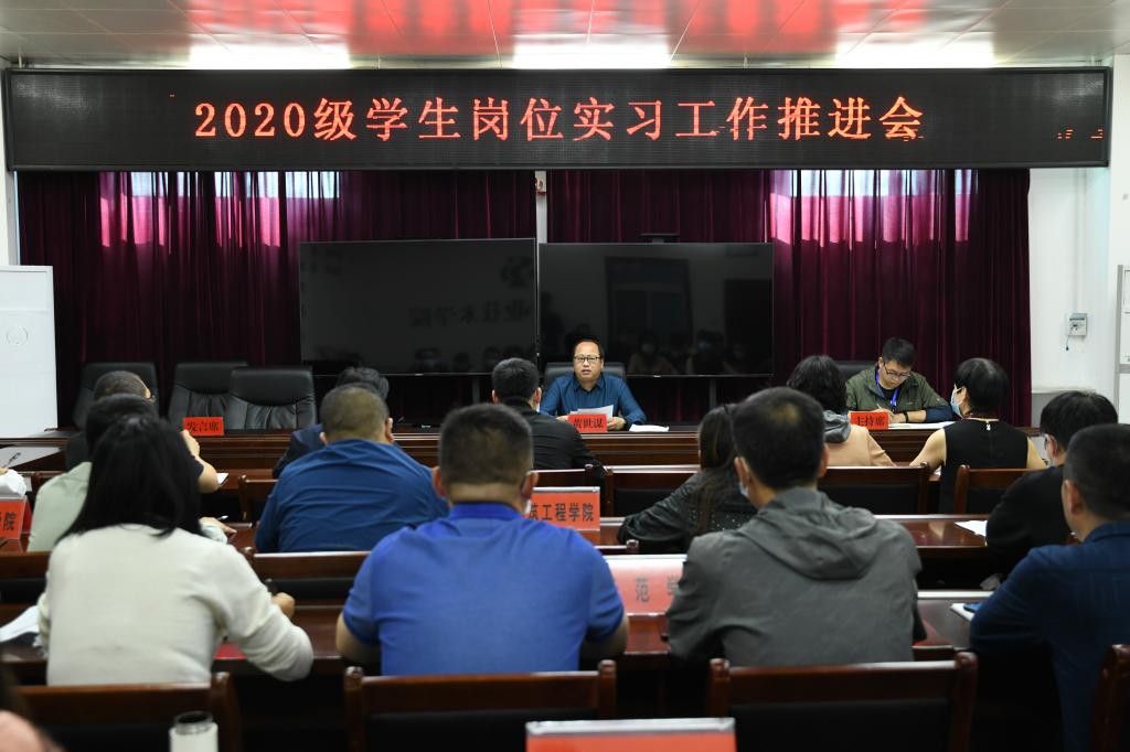 5月19日下午,教务处在天鹅湖校区荣誉室召开2022年学生岗位实习工作推进会。党委委员、副院长黄世谋出席会议并讲话;各院部主管实习工作副院长(副主任)、教学科长、实习专干参加会议。