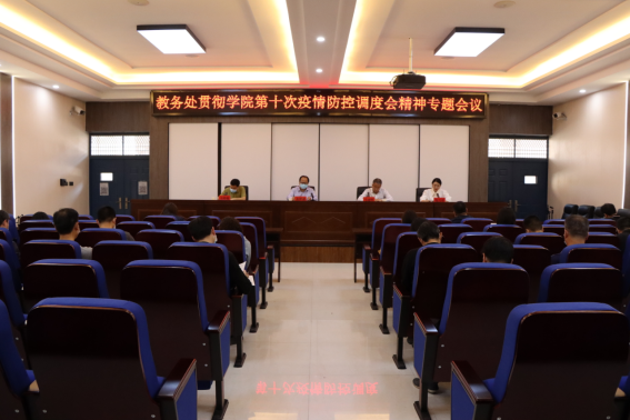 5月6日上午,教务处在天鹅湖校区1106会议室召开贯彻学院第10次疫情防控调度会精神专题会议。党委委员、副院长黄世谋出席会议并讲话;教务处负责人马建明、各院部教学副院长及教务处全体人员参加会议。会议由教务处刘丰年主持。