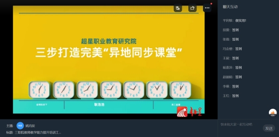 2月16日,由北京超星集团超星职业教育研究院高级讲师耿浩浩以《三步打造完美“异地同步课堂”》为题对全院教师进行了超星一平三端智慧教学平台使用方法的培训。他从线上教学常见问题入手,阐释了“线上直播教学+实时课堂活动”的异地同步课堂概念,从初级线上教学、中级线上教学、高级线上教学三步介绍了异地同步课堂授课模式,并为我们提供了许多好的方法和建议。