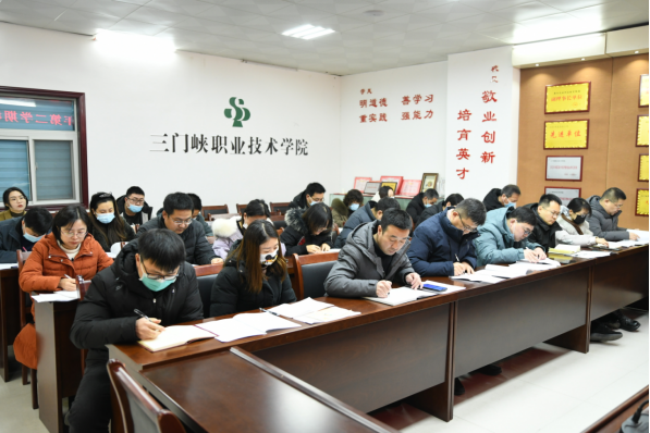 会上,教务处刘丰年老师传达了《关于2021-2022学年第二学期延迟开学期间线上教学工作实施方案的通知》(三职院疫防办〔2022〕4号)文件精神,从总体目标、基本原则、教学安排、教学平台、教学准备、教学组织、教学监控、教学评价、具体要求九个方面对线上教学提出了明确要求,确保延迟开学期间线上教学活动平稳有序、高效开展。