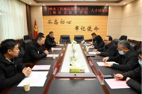 1月25日上午,我院与三门峡水工机械有限责任公司在天鹅湖校区办公楼308召开人才对接会。三门峡水工机械有限责任公司总经理孙卫东、党支部书记罗磊,起重机分公司经理李燕春、经营处范靖来我院洽谈人才对接事宜。我院党委委员、副院长黄世谋,汽车学院院长陈桂芳,智能制造学院院长辛峰,教务处负责人马建明,招生与就业办公室负责人胡昌民参加会议洽谈。