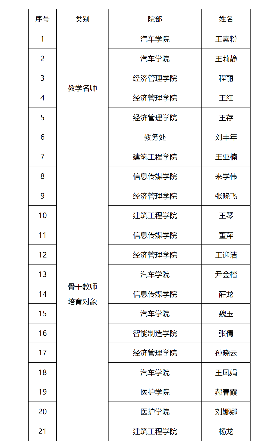 继2021年我院28名教师分获省级名师和省级骨干教师培育对象后,2022年我院推荐的21名教师全部获批。