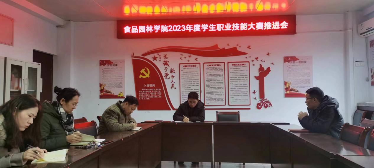 食品园林学院于11月13日召开了2023年度学生职业技能大赛推进会,积极备战各项赛事。针对今年的四个赛项,院部根据比赛的竞赛规则和上学期比赛的经验,认真分析了本次赛项的特点与规律,有针对性地提出了培训要求。