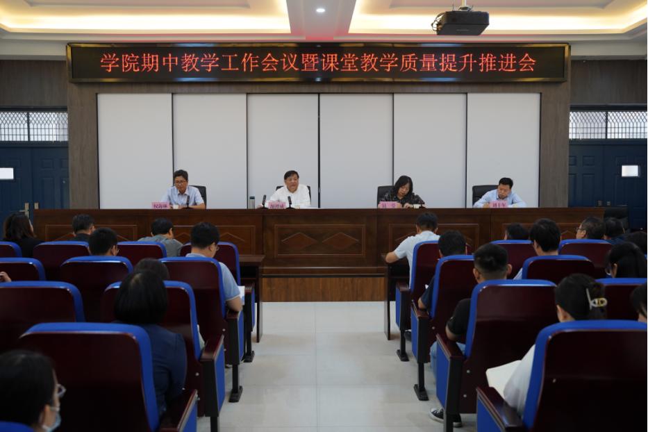 5月15日下午,我院在天鹅湖校区1106会议室召开以“固本强基提质量 凝心聚力促实干”为主题的期中教学工作会议暨课堂教学质量提升推进会。党委副书记、院长颉潭成出席会议并讲话。党委委员、副院长员莹,人事处处长权海林,各院部院长、教学副院长、教学管理秘书、教研室主任及教务处全体工作人员参加了会议。会议由教务处刘丰年主持。