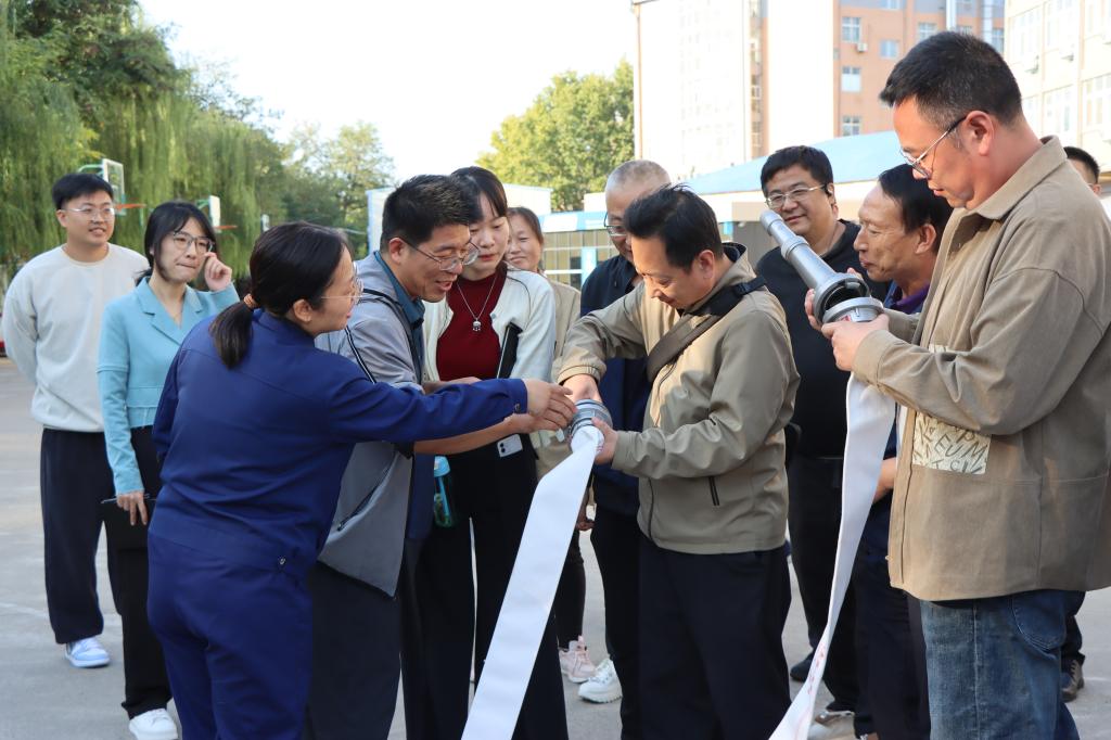 培训结束后,全体人员前往操场开展消防器材演练。参训人员在薛婷婷的全程专业指导下,按照“提、拔、瞄、压”灭火步骤,精准地扑灭了火焰。大家在看中学,学中练,零距离感受了火灾“扑救”过程,在实际参与过程中掌握了灭火器和消防栓等消防器材的使用方法,提高了消防安全意识和应急处置能力。