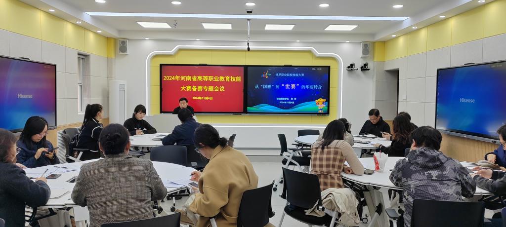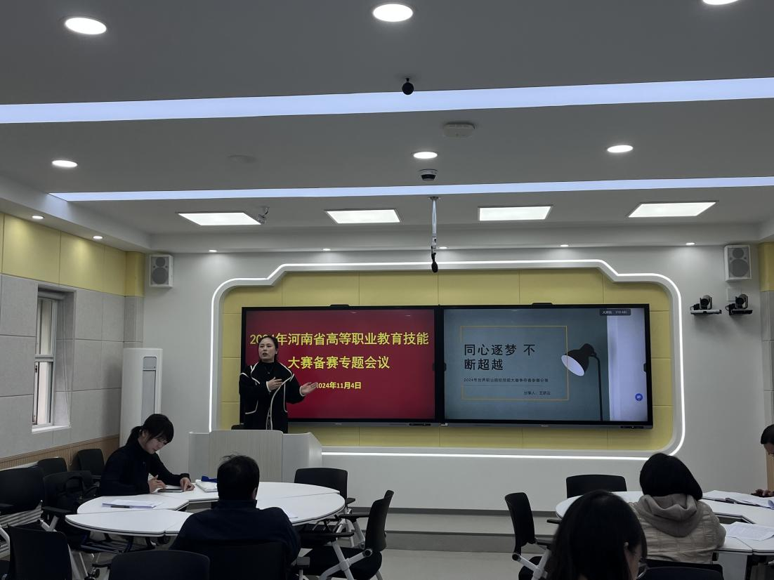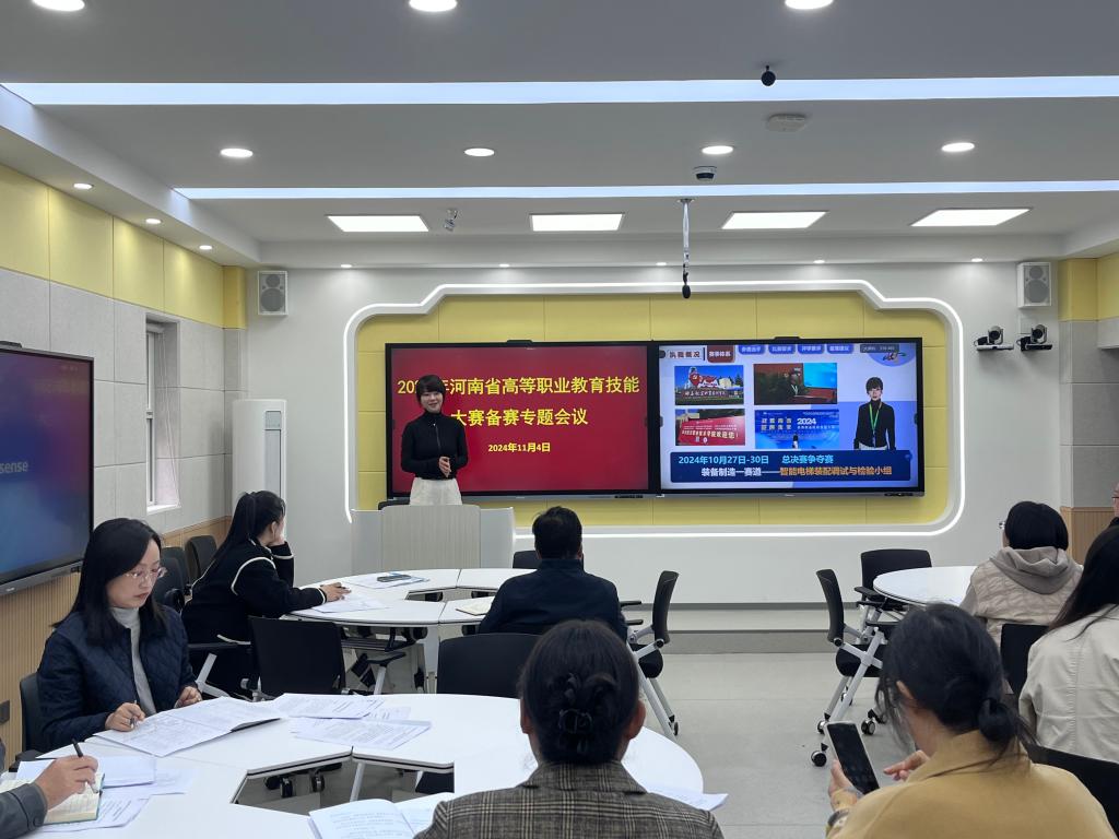 为落实立德树人根本任务,持续培养高素质技术技能人才,11月4日上午,学院在天鹅湖校区2号楼智慧教室召开2024年河南省高等职业教育技能大赛备赛专题会议。各院部教学副院长、竞赛负责人及教务处相关工作人员参加会议。会议由教务处刘丰年主持。