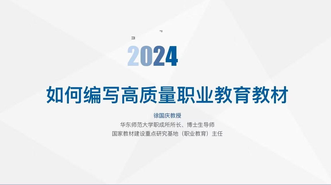 徐国庆教授围绕“如何编写高质量职业教育教材”这一核心主题,从教材的定义、教材质量标准、教材编写程序、电子教材开发、如何应用好课程思政五个维度展开深入讲解。他指出,当前职业教育教材存在质量参差不齐的问题,教材结构、内容、呈现方式、学习要素以及物理质量等方面均有可提升的空间,这为教材编写工作明确了改进方向。在阐述教材编写程序时,徐国庆教授详细介绍了选题、团队搭建、功能定位、同类教材分析、编写思路与体例设计、资料收集、样章撰写、分工撰写、统稿、试用、出版等一系列环节,为参与教材编写的教师们提供了清晰的操作指南。同时,他还强调了电子教材开发的重要性,结合职业院校学生特点以及职业知识特性,点明电子化教材是未来发展趋势;并就课程思政在教材中的融入给出了具体建议,避免生硬植入,倡导有机融合。