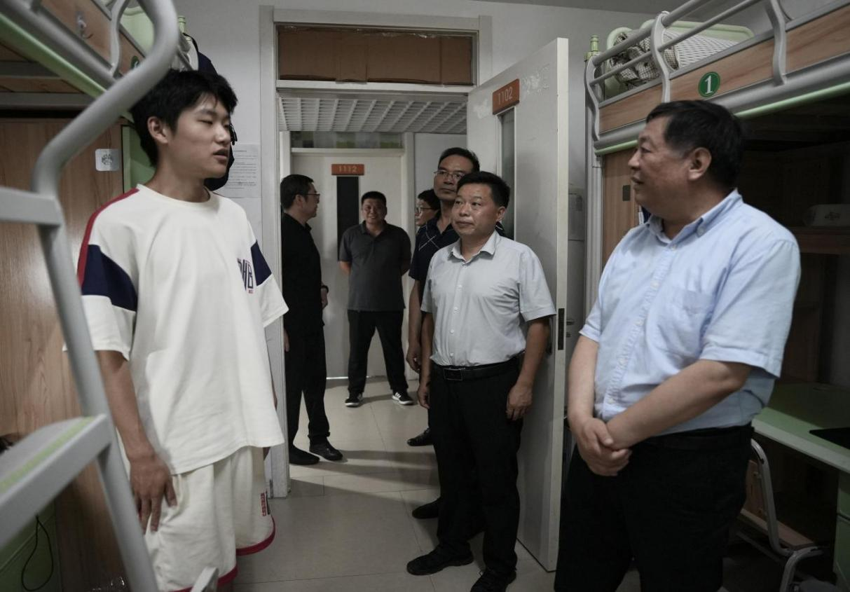 为深入贯彻“以生为本”办学理念,切实做好暑期安全保障工作,7月24日至25日,党委副书记、院长颉潭成带领党政办、教务处、学生处、招生与就业办公室、总务处、保卫处及相关院部党政负责人一行,前往世界职业院校技能大赛备赛场地、应用工程学院校区及宝武铝业科技有限公司生产一线,看望暑期留校的备赛选手与考研学子,以及坚守岗位的实习学生,为他们送去学院的关怀与鼓励。