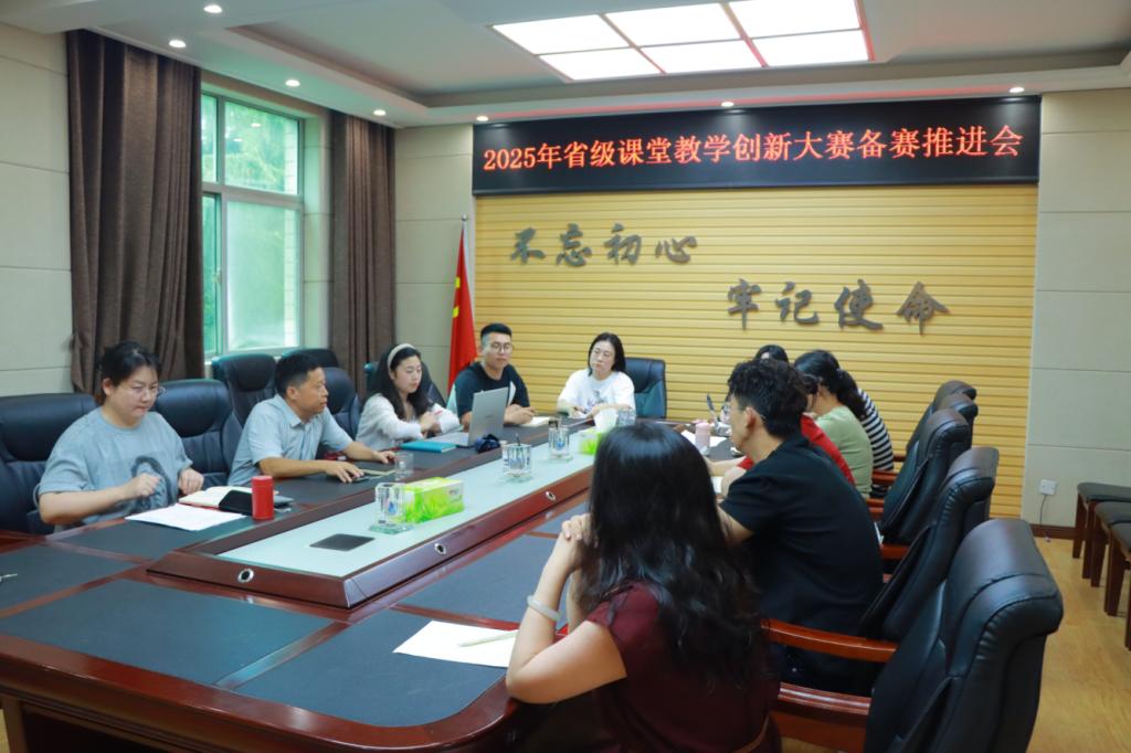 为了进一步做好2025年省级课堂教学创新大赛备赛工作,明确备赛方向,凝聚共识、激发动力,8月20日上午,我院在天鹅湖校区308会议室组织召开了2025年省级课堂教学创新大赛推进会。教务处负责人刘丰年,各院部推荐的9位备赛教师参加了会议。会议由教务处李安飞主持。