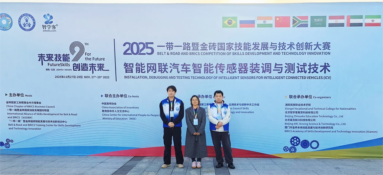近日,2025一带一路暨金砖国家技能发展与技术创新大赛之“智能网联汽车智能传感器装调与测试技术”赛项决赛在湖南湘西民族职业技术学院成功举办,我院汽车学院尹金楷、金银平两位老师指导的24级智能网联汽车技术专业学生薛庭辉、曹晓灿,凭借扎实的专业功底、娴熟的实操技能与沉稳的现场表现,从全国众多参赛队伍中脱颖而出,荣获高职组铜牌。这一荣誉不仅为我院新能源汽车技术专业群中智能网联汽车技术专业再添闪亮勋章,更彰显了学院在智能网联汽车领域人才培养的扎实成效,为高水平专业群建设注入了强劲动力。