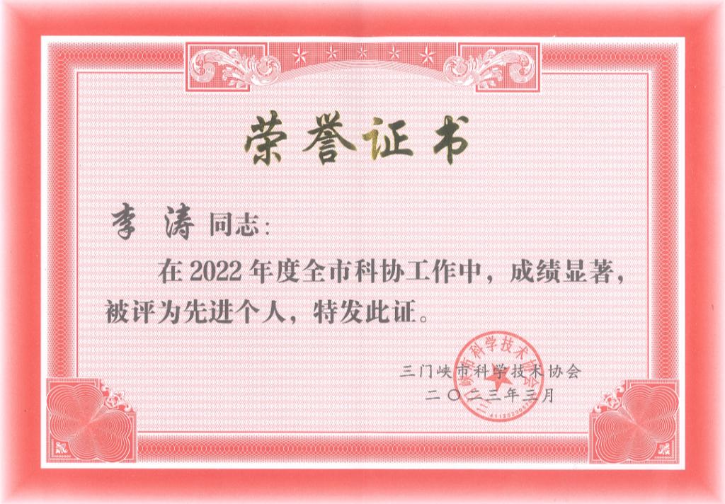 3月28日,三门峡市科学技术协会印发《关于表彰2022年度全市科协工作先进单位和先进个人的决定》(三科协字〔2023〕9号)并召开大会,对2022年全市科协工作先进单位和先进个人进行表彰。我院被评为“全市科协工作先进单位”,李涛老师获“全市科协工作先进个人”荣誉称号。