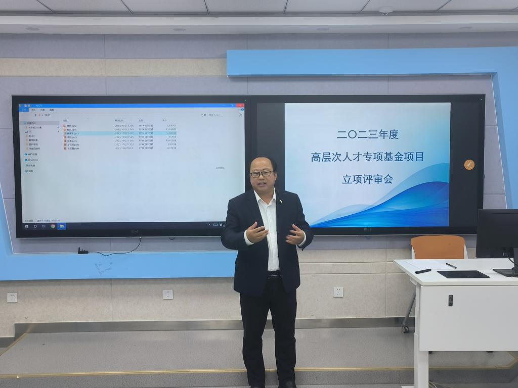 10月27日下午,我院在天鹅湖校区举行了2023年高层次人才(教授、博士)专项基金项目评审会。7位教授、博士进行了现场汇报并参加了答辩。学院党委委员、副院长黄世谋教授出席评审会并致辞。会议由科研处处长陈玮教授主持。