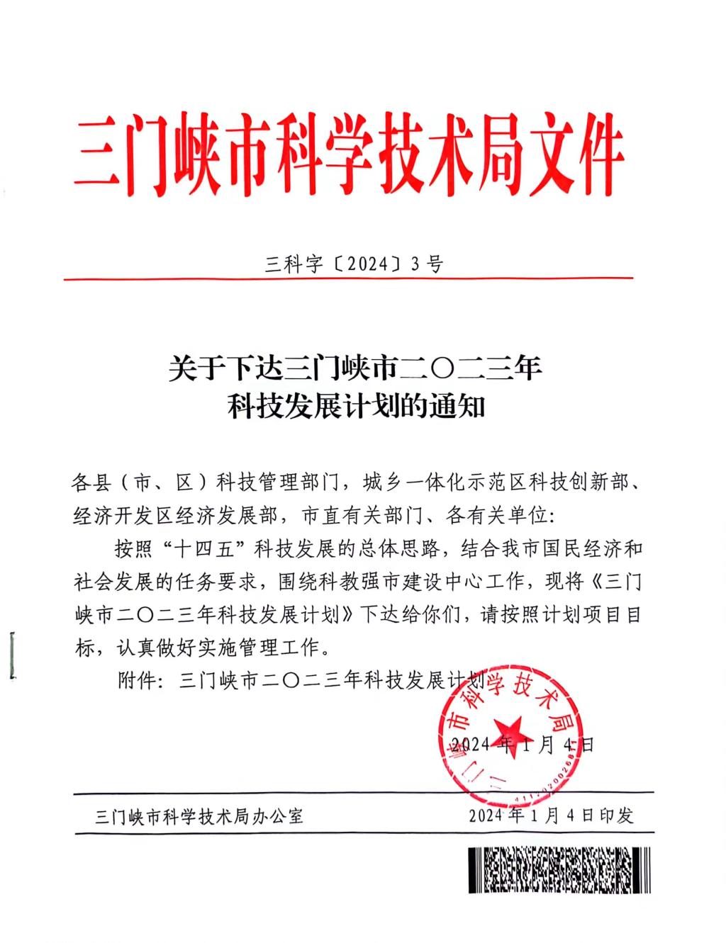 近日,三门峡市科学技术局发布《关于下达三门峡市二〇二三年科技发展计划的通知》(三科字〔2024〕3号),我院共有42个项目立项,其中科技攻关项目19项、软科学项目23项。