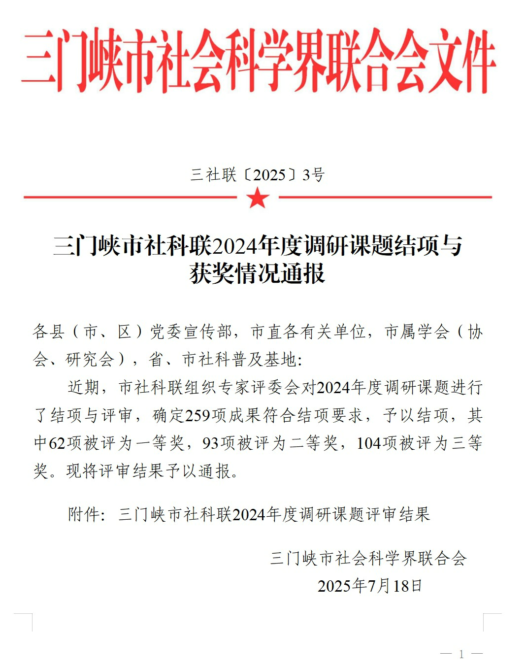 2.三门峡市社科联2024年度调研课题二等奖项目