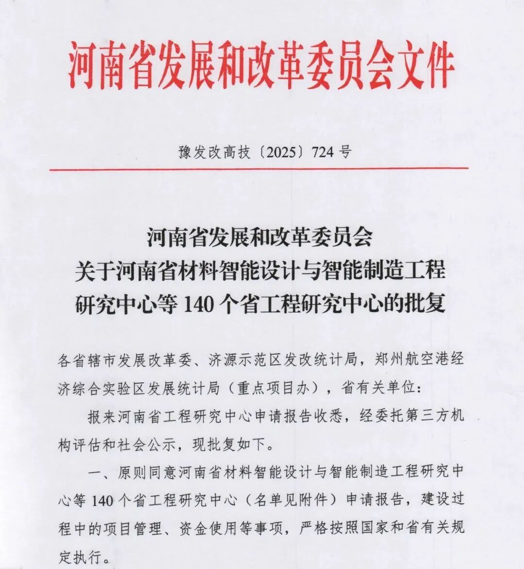 近日,省级工程研究中心申报结果揭晓,根据《河南省发展和改革委员会关于河南省材料智能设计与智能制造工程研究中心等140个省工程研究中心的批复》,学院申报的“河南省有色金属新材料智能制造应用工程研究中心”,参与申报的“河南省骏通新能源智能专用车工程研究中心”成功获批,这不仅标志着学院在“双高”建设中实现省级工程研究中心新突破,更推动学院在新材料、新能源科研平台建设迈上新台阶。
