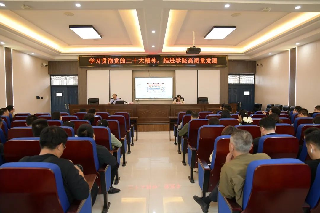 会上,黄院长以《深刻领会六个“必须坚持”系统化推进高职院校高质量发展之体系建构》为题,围绕六个“必须坚持”,深入阐述了党的二十大精神,同时聚焦主责主业,结合高职院校的特点和职业教育的发展趋势,对我院高质量发展提出了具体措施和深入思考。报告主题鲜明、思想深刻、内涵丰富,具有很强的理论性、指导性,对我院机关各部门、处室进一步落实、落细、党建工作责任制具有重要的促进作用。
