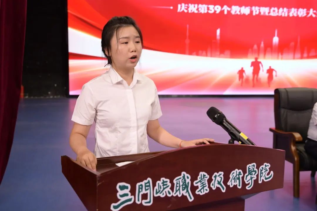 大会向一年来涌现出来的各类先进个人代表颁发了荣誉证书。师范学院教师左晓红、信息传媒学院辅导员薛碧莹代表受表彰教师分别进行了发言。