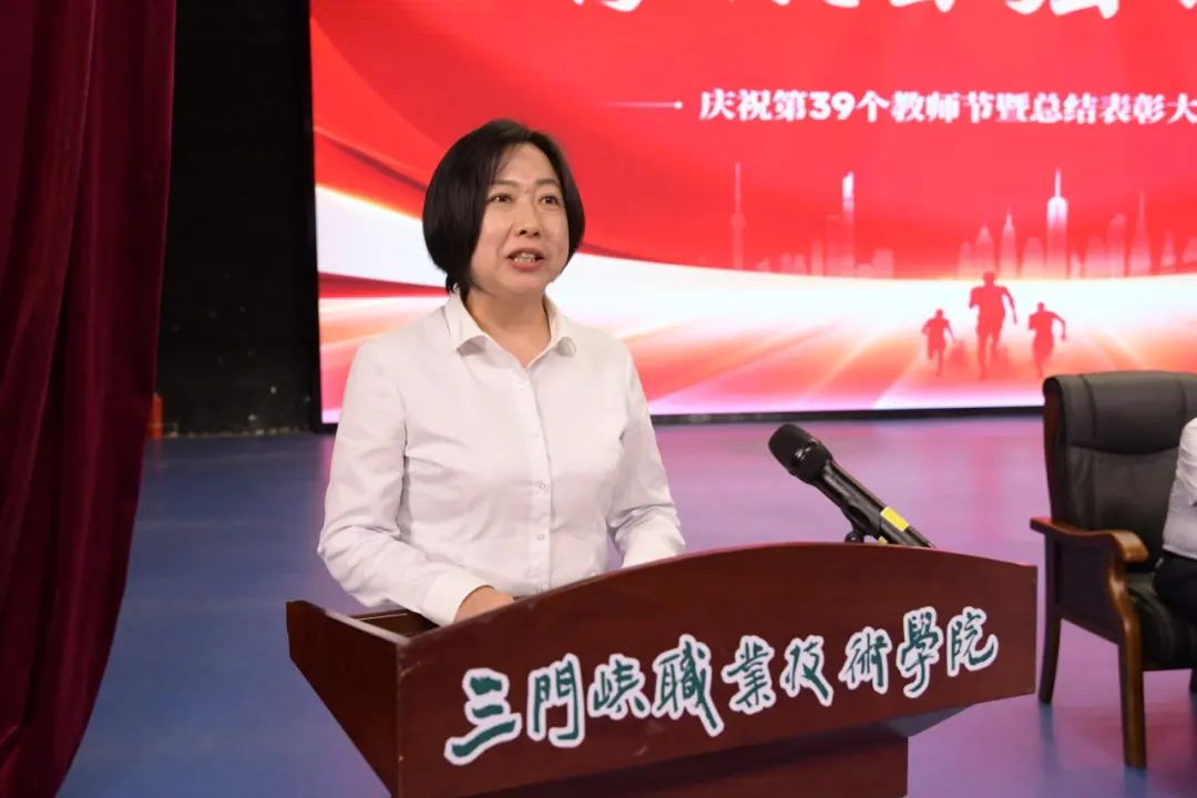 9月7日下午,我校在学术报告厅召开以“躬耕教坛,强国有我”为主题的庆祝第39个教师节暨总结表彰大会,会议总结了过去一年来学校取得的成绩,并对涌现出的各类先进个人进行了表彰。党委书记杨彤、校长颉潭成出席会议并讲话,党政领导班子成员及全体教职员工参加会议。会议由党委委员、副校长马旭东主持。