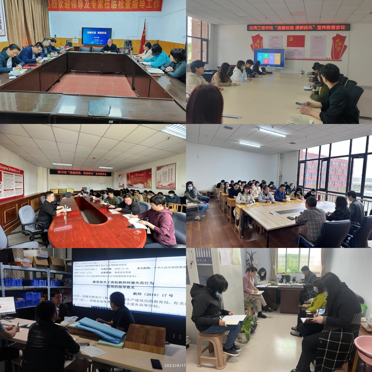 为打造风清气正的学术风气,引导我院教师坚守学术道德,践行学术规范,追求守正创新、严谨自律的治学精神和科学精神,我院从4月1日开始,开展了为期一个月的“清廉校园·清朗研风”宣传教育月活动。在学院领导和各院部、各部门的大力支持下,“清廉校园·清朗研风”宣传教育月活动取得预期成效。