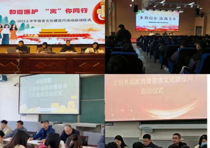 三月初,各院部纷纷举行文明养成教育暨宿舍文化建设月启动仪式。活动重点在于进一步加强学生文明养成和学生宿舍管理工作,提升宿舍文化品位,营造积极向上、舒适优雅、文明礼貌、安全和谐的宿舍文化氛围校园环境,培养学生良好的学习、生活习惯,全面提高大学生综合素质。