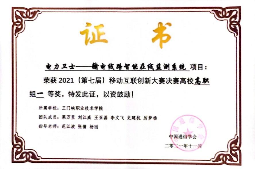 202110月,再次经过现场展示、省级专家组评议答辩,共选拔出55件作品参加国赛,其中高职类院校仅有4件作品入围,我校占其中之一。入围国赛后,参赛学生和指导教师不断对作品进行优化,精益求精,在国赛评审环节与众多重点院校研究生、本科生同台竞逐,最终获得全国三等奖,其中高职类院校仅有2件作品获得全国三等奖,我校其中之一。