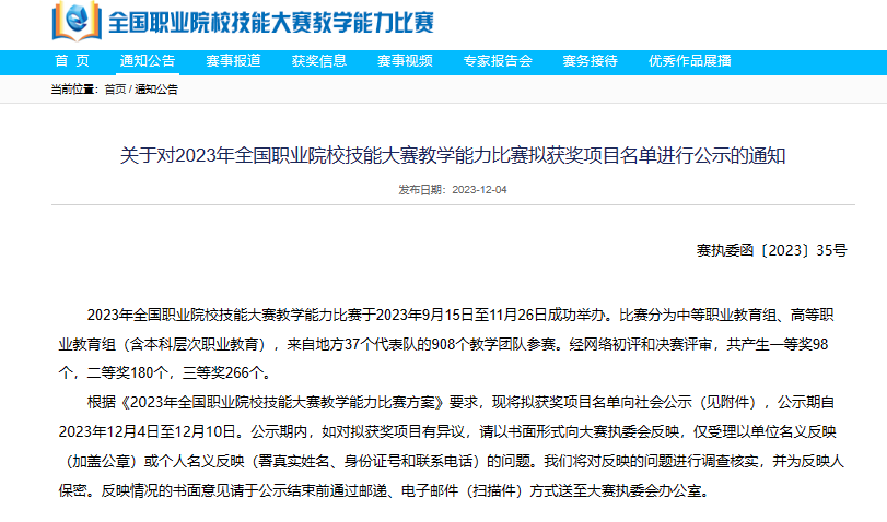 2023年全国职业院校技能大赛教学能力比赛拟获奖项目名单 |