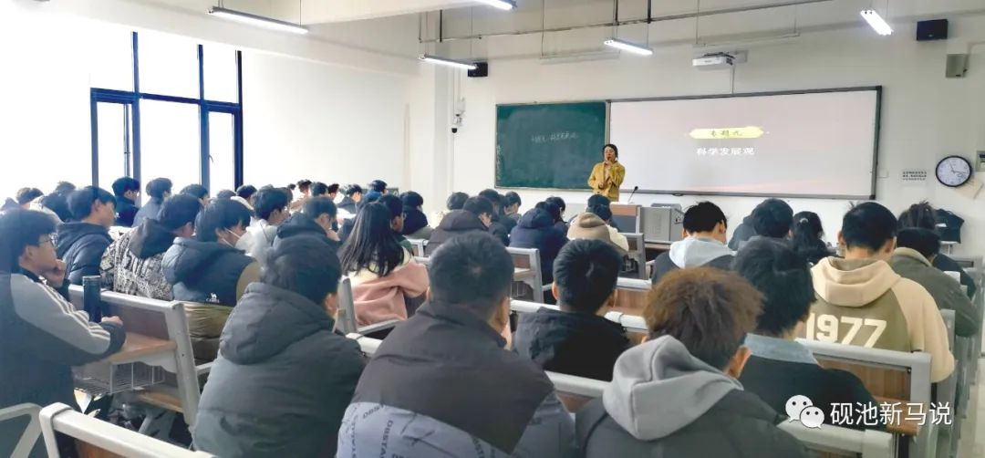 听课调研活动主要采取听、评、谈、议等方式进行。调研组从本学期思政课课表中随机抽取,推门听课,先后听取了齐潇晓老师和冯欢欢老师讲授的《毛泽东思想和中国特色社会主义理论体系概论》“科学发展观”专题。调研组对两位教师授课情况进行了现场指导和评价,认为两位教师课堂教学态度认真、严谨规范、亲和力强,思路清晰,逻辑严谨,个人教学特色突出,综合素质高。同时,也指出思政课必须与新时代社会发展相结合,实现教材体系向教学体系的转换,按照青年大学生的思想规律和接受特点,选取典型案例,串联知识要点,把思想性、理论性、知识性与时代课题、焦点问题、成长话题结合起来,激发青年大学生的积极性、参与度和认同感。