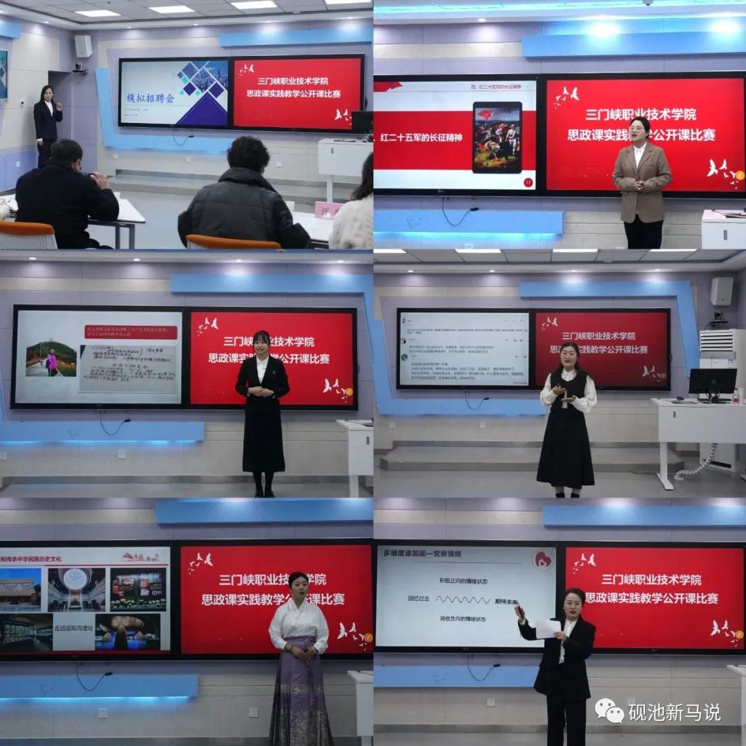 为深入学习贯彻党的二十大精神和习近平总书记关于思政课建设的重要论述,展示思政课实践教学改革成效,推进我校思政课实践教学走深走实,按照《中共bcw8白菜网-2026白菜网总站大全|百富白菜网|海博论坛|白菜全网担保平台曝光官网委员会关于开展首届“大思政课”建设暨实践教学成果展示活动的通知》安排,12月16日上午,思政课实践教学公开课比赛在天鹅湖校区2号教学楼智慧教室举行。本次比赛特邀三门峡市社科联副主席李纪文、三门峡市委宣传部理论科科长程于真、学校党委宣传和统战部部长王静宇、教务处李安飞、马克思主义学院雷霞、齐潇晓担任评委。